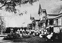 The sisters soon sought the patronage of the Presbyterian Church in Brisbane, and this was granted in May 1909.[8] The school proved popular, and steady growth in students numbers necessitated the construction of new dormitories early in 1911, with the school's boarding population nearing 16 out of the 60 pupils enrolled.[9]