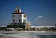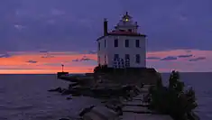 The Fairport Harbor West Breakwater Light, on Lake Erie, located near the end of the west breakwater at the mouth of the Grand River was built in 1925, replacing the Grand River (Fairport Harbor) Light, which still stands and is now a marine museum.[2][3]