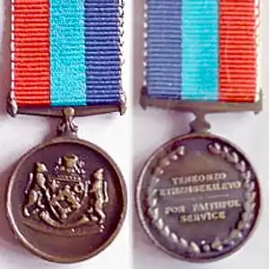 The Faithful Service Medal was instituted by the State President of the Republic of Transkei in 1987, for award to all ranks as a long service medal.[1][2]