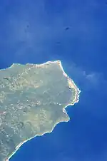 Satellite image of Falealupo at the west end of Savai'i island. (NASA photo 2009).