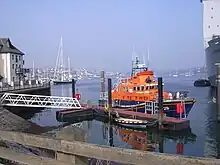 The Falmouth Docks were developed from 1858,[15] and the Royal National Lifeboat Institution (RNLI) opened Falmouth Lifeboat Station nearby in 1867. The present building dates from 1993 and also houses Her Majesty's Coastguard.[16] The RNLI operates two lifeboats from Falmouth: Richard Cox Scott, a 17-metre (56 ft) Severn-class all-weather boat,[17] and B-916 Robina Nixon Chard, an Atlantic 85 inshore lifeboat.