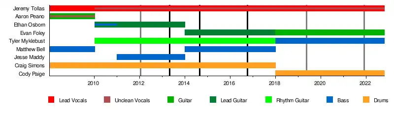 The group currently consists of vocalist Jeremy "JT" Tollas, bassist Tyler Myklebust, guitarist Evan Foley, and drummer Cody Paige.