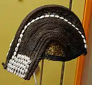 One of the most popular art forms attributed to the Fang culture are the wooden reliquary heads, many of which contain the skull or bones of ancestors.[15] There is a characteristic heart-shaped, concave face and large bulbous forehead. The heads are very abstract and focus on geometric form and covered in a black patina. Some appear to 'cry', which is streaks of resin made from a mixture of palm oil and other seed oils. The heads are tied to the ideas of welfare and social power.