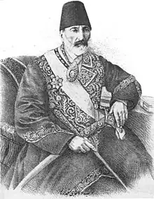 Farhad Mirza (Persian: فرهاد میرزا; 1818 – 1888) was a Qajar prince, administrator, and writer in 19th-century Iran. He was the fifteenth son of the former crown prince Abbas Mirza (died 1833) and younger brother of the third Qajar shah (king) of Iran, Mohammad Shah Qajar (r.1834–1848).[1]