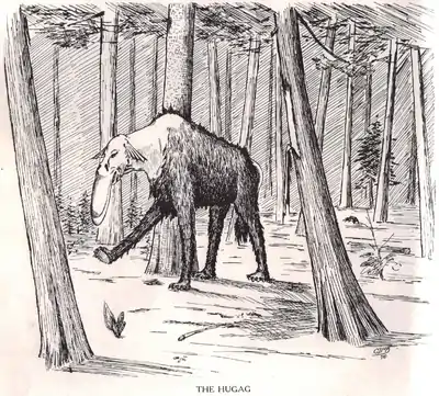 The hugag, a typical fearsome critter. Illustration by Coert DuBois from Fearsome Creatures of the Lumberwoods by William T. Cox.