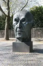 In 1979, Helmut Schmidt, the first occupier of the building, transformed the forecourt of the new building, creating a large green area where the sculpture Large Two Forms by Henry Moore) was installed. In May 1982 a bust of Konrad Adenauer, who became the symbol of the Bonn Republic, was erected on the nearby Chancellor's Place .