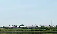 State and county governments expanded Sheridan's urban growth boundary to include the prison site in 1986, which opponents then fought in court.[6] These efforts, along with two ballot measures in November 1986, all failed, and groundbreaking for construction was held in March 1987.[7] Local businesses and the city had sought the prison to provide jobs in the area.[7] Sheridan expanded its water and wastewater treatment systems at a cost of $2.2 million as part of the project.[7]