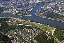 The Federal Horticultural Show 2011 (German: Bundesgartenschau 2011) was held from 15 April to 16 October 2011 in Koblenz, Germany. It was the first Federal Horticultural Show in the state of Rhineland-Palatinate. Venues had been the plateau in front of the Ehrenbreitstein Fortress, the square in front of the Electoral Palace and flower beds in the area around the Deutsches Eck. One of its attractions was the cable car over the Rhine, which was established as an ecologically sound transport connection. It connects the Rhine shores near the Basilica of St. Kastor with the plateau in front of the fortress. Unlike previous garden shows, the staging area in Koblenz was mainly in the centre of the city and directly affected the local population. In addition to the prestige of hosting a Federal Horticultural Show, Koblenz benefited to a much greater extent from the associated urban development.