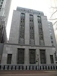 The Federal Reserve Bank of Cleveland Pittsburgh Branch Office is one of two Federal Reserve Bank of Cleveland branch offices (the other is in Cincinnati). The Pittsburgh Office of the Federal Reserve Bank of Cleveland hosts one of two savings bonds processing sites in the nation.[1] The Pittsburgh branch presides over Jefferson, Monroe and Belmont counties in Ohio, Wetzel, Tyler, Pleasants, Marshall, Ohio, Brooke and Hancock counties in West Virginia, and all of Western Pennsylvania. In 1915 it was revealed that the Pittsburgh branch location was to be the new home of a relocated Cleveland Fed District with a majority vote secured on the board of governors, but the U.S. Attorney General at the time nixed moving the Cleveland, Kansas City, Minneapolis, Boston and Atlanta Federal Reserve Districts, stating that it would instead take an act of Congress to move those district headquarters. Pittsburgh remained a branch location only.[2]