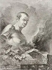 Giovanni Battista Piranesi by Felice Polanzani, engraving from first edition, ’b’; Book: Opere varie, Frontispiece, 1750