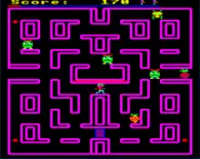 If a monster runs into a piece of fruit, it pauses while it absorbs the fruit then mutates into a more dangerous monster. If Felix runs into a monster or his energy is fully depleted, a life is lost. If the last piece of fruit is eaten by a monster, it is game over. If there is still fruit left when the timer runs out, the level is complete and a new level begins with increased difficulty as there is more fruit to protect and some of the monsters are already mutated.