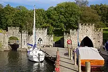 The manager's house (originally a gas works which provided lighting for the estate), the boathouses (including one converted to a cafe), a workshop, and the dock are all Grade II listed buildings.[5][7][8][9]