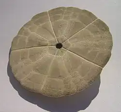 - ↑ Durham, J. W. (1955). "Classification of clypeasteroid echinoids". California University Publications in Geological Science. 31: 73–198.