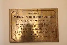 Memorial plaque to Friederich Schiess at the Rorke's Drift Museum, Natal.