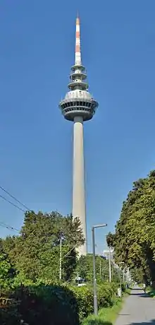 The Fernmeldeturm Mannheim is a 217.8-metre-high (715 ft) concrete telecommunication tower with an observation deck in Mannheim, Germany. It was designed by the architects Heinle, Wischer und Partner and built from 1973 and 1975. It contains transmission facilities for VHF radio services, microwave communications, and omnidirectional radio services. A glassed observation deck and a revolving restaurant at a height of 120 metres allow a nice view over Mannheim and the surrounding area. The tower is a modern landmark of the city of Mannheim.[1]