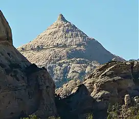 Ferns Nipple is a 7,065-foot (2,153-meter) elevation summit located in Capitol Reef National Park, in Wayne County of Utah, United States.[3] This iconic landmark is situated 4 mi (6.4 km) southeast of the park's visitor center. Precipitation runoff from this feature is drained by tributaries of the Fremont River, which in turn is within the Colorado River drainage basin. Folklore attributes this geological feature's naming to outlaw Butch Cassidy and his favored girlfriend named Fern.[4]