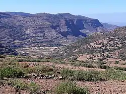 In the valley head there are many springs that have allowed an age-old irrigation system to be established.[1] Such irrigated agriculture is important in meeting the demands for food security and poverty reduction.[2] The irrigated lands allow growing tropical fruits such as a local banana cultivar, lime and trunghi.[8]