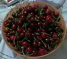 There are multiple stories of the origin of the Ferrovia cultivar. One version states that it originated on a small farm in Turi, where two local farmers, Giovanni Arrè and Matteo Di Venere, cultivated the original tree from a seed left over from a meal. When the fruit of this tree proved popular, it was extensively grafted by other farmers in the region and became widespread.[1] In another version, the tree received its name because it was first discovered growing near a railway line between Turi and Sammichele di Bari.[2][3] The Ferrovia is the most widely grown cherry in Italy,[2] and is also grown in northern Greece.[4]
