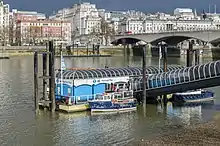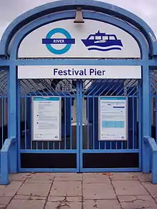 Festival Pier is a stop for river boat services on the River Thames, London, UK. It is immediately in front of the Royal Festival Hall and National Film Theatre, and serves the South Bank complex. The pier is owned and operated by London River Services, part of Transport for London.
