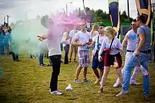 People throwing paint