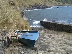 In addition, the site continues to be served by two small fishing ports, that supports small subsistence or artesnal fishing practices.[3] At the eastern border, just after the lookout, is a winding dirt road that leads to the old port of Feteiras, while near the western edge of the parish (at the end of Canada do Porto) is the more recent entrepot and natural pool.