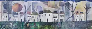 Fig Houses is a 2010 mixed media collage by artist India Cruse-Griffin, which depicts a row of houses. The work, which measures 13" x 37.25", framed, is made from collaged paper gathered from magazines, upon which Cruse-Griffin then paints, often allowing the underlying magazine paper to show through.[1][2] While her subjects are often clear and straightforward, this collage technique serves as a reminder of the accumulation of lived experience.[1][2]