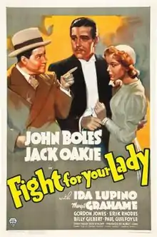 Fight for Your Lady is a 1937 American comedy film directed by Benjamin Stoloff and written by Ernest Pagano, Harry Segall and Harold Daniel Kusel. The film stars John Boles, Jack Oakie, Ida Lupino, Margot Grahame, Gordon Jones, Erik Rhodes, Billy Gilbert and Paul Guilfoyle.[1][2][3] The film was released on November 5, 1937, by RKO Pictures.