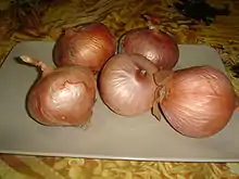 The Figueres onion is an onion cultivar that is a non-hybridized bulb. It is somewhat flattened in shape with an outer purple skin and an interior of a paler color. It is highly appreciated for its smooth, sweet, soft texture,[1] and around 200 grams in individual weight.[2] As its name implies, it is typical of the Figueres and Empordà region of Catalonia.[3]