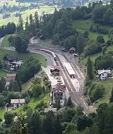 Filisur railway station is a railway station in the municipality of Filisur, in the Swiss canton of Graubünden. It is located at the junction of the 1,000 mm (3 ft 3+3⁄8 in) metre gauge Albula and Davos Platz–Filisur lines of the Rhaetian Railway.[1] Hourly services operate on both lines.