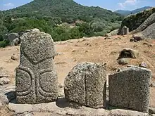In total, about twenty menhirs of various times were counted in Filitosa. They constitute approximately half of the total staff of these monuments in Corsica.