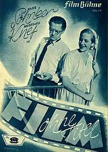 Film Without a Title (German: Film ohne Titel) is a 1948 German comedy film directed by Rudolf Jugert and starring Hans Söhnker, Hildegard Knef and Irene von Meyendorff.[1] It was made by Bavaria Film at the Emelka Studios in Munich in the American Zone of Occupation. Location shooting took place around Lüchow-Dannenberg in Lower Saxony. The film's sets were designed by the art directors Robert Herlth and Max Seefelder.