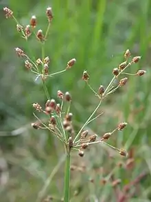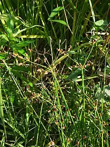 Fimbristylis miliacea, the grasslike fimbry[1] or hoorahgrass,[2] is a species of fimbry that probably originated in coastal tropical Asia but has since spread to most continents as an introduced species.[3] It is a widespread weed in some areas and is sometimes problematic in rice paddies.