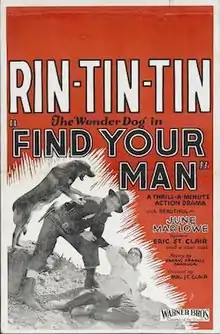 Find Your Man is a 1924 American silent action/drama film starring Rin Tin Tin and June Marlowe. It was directed by Mal St. Clair who persuaded Warner Bros. to hire his friend, Darryl F. Zanuck, to write the screenplay; this began a long association between Zanuck and Rin Tin Tin. Filming took place in Klamath Falls, Oregon.[2][3] This film survives.[4] It was transferred onto 16mm film by Associated Artists Productions[5] in the 1950s and shown on television.