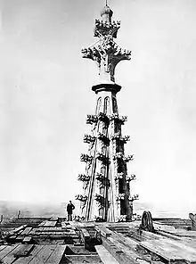 A wrought-iron rod 10 centimetres in diameter and 21 metres long was passed through the centre of the shaft to stabilise it with a copper sheath. This rod hangs downwards into the tower's spire and is weighted down in the manner of a pendulum.