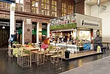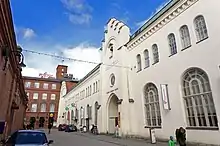 The Finlayson area also hosts the business centre Siperia which was opened in 2001 in the renovated premises of the old spinning hall.[8] It has over ten businesses, mostly restaurants and cafés, but also other businesses such as the entertainment centre ZBase offering laser battles. The Plevna building to the west of Itäinenkatu hosts the Finnkino Plevna movie theatre, a brewery restaurant and a parking garage. There is a pedestrian tunnel leading from the shopping centre underneath Satakunnankatu to the Frenckell square.[9] In June 2017 a Lidl grocery store was opened in the Seelanti building in the Finlayson area.[10]