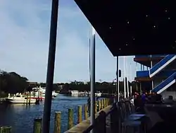 The Pines was originally the site of a Coast Guard station built in 1876 and known as Lone Hill Saving Station. The area was purchased by the Home Guardian Company in 1924. As no development occurred, the area became a popular nude beach.[7] Squatters erected temporary buildings.[8] The "harbor" is the area where all the commercial buildings are located, including docks for yachts, the passenger ferry from Sayville, and freight operations.
