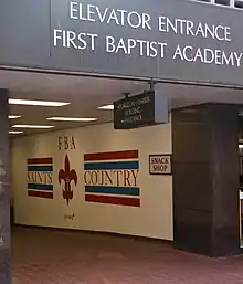 First Baptist Academy of Dallas (commonly FBA) is a private, Biblically integrated, college preparatory Christian school located in Dallas, Texas. First Baptist Academy, previously in Downtown, is now located at a new campus in east Dallas, at the current Saints Athletic Complex. FBA has been educating students at the downtown location for 44 years.