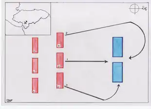 At 9am on November 11, 1827, the first movement of maneuvers was carried out by Colonel Ramón Pacheco. He positioned himself to defend the Avenue that leads from Ojojona to the Valle de la Trinidad. He then attacked Milla's center line. Under the command of Colonel Remigio Díaz, a detachment of 150 men moved along the bank of the Sicatacaro ravine, headed northwest, from Ojojona to Valle la Trinidad and attacked the enemy rear. General Morazán, together with Colonel Román Valladares, surrounded the Caranguije hill and attacked the right flank of the Federal Forces.[4]