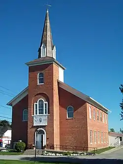 First Presbyterian Church of Avon is a historic Presbyterian church located at East Avon in Livingston County, New York. It is a three- by six-bay Federal style brick building, approximately 46 feet by 60 feet. The center of the principal elevation features a three-story bell tower surmounted by a six sided, broached spire. Construction of the building started in 1812 and it was dedicated in 1827. In 1866 the existing church was renovated and the present tower added.[2]