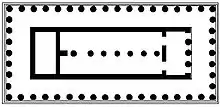 The temple is peripteral with 9×18 external columns on a three-step stylobate, a feature that contributes to its pseudodipteral layout.[1][2]