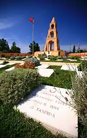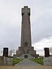 A range of battlefield memorials emerged. The huge Douaumont ossuary was built to remember Verdun through a private French charity, organised by the Bishop of Verdun.[137] The ossuary was deliberately multi-faith, however, with Catholic, Protestant, Jewish and Islamic facilities.[138] The Romanian authorities built a similar mausoleum at Mărăşeşti, explicitly likened to the use French ossuary at Verdun.[139] Amidst some concerns about denigrating the importance of other battlefields, the CBMC focused on producing a single major memorial at Vimy.[140] In Turkey, the entire battlefield of Gallipoli was ceded to Britain and her imperial allies in 1923, and the area was turned into an extended memorial to the war dead.[141] There were no settlements to reconstruct, so the graves were largely left scattered in individual graves or small cemeteries, and the slopes were planted with Australian vegetation.[142] Obelisks were particularly popular memorials at Gallipoli along the ridges, including one obelisk 100 ft high.[143]
