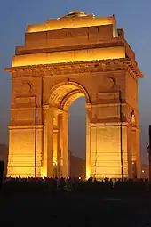 One of the key developments in memorials to the war, the cenotaph, used an empty tomb to symbolise these aspects of the war. In 1919, Britain and France planned victory marches through their respective capitals and as part of this France decided to erect a temporary cenotaph, an empty sarcophagus monument, which would be saluted by the marching troops.[185] The British Prime Minister David Lloyd George decided that a similar but non-denominational memorial should be built in London, despite ministerial concerns that a cenotaph was an inappropriate, Catholic form of monument, and that it might be desecrated.[186] The victory marches went ahead; French political leaders had the memorial in Paris removed immediately after the parade, on the basis that it was too Germanic in appearance, but the London cenotaph proved very popular and hundreds of thousands flocked to see it.[187] The popularity of the temporary Cenotaph resulted in it remaining open until the following year, when the decision had to be taken about what to do with the decaying structure: there was concern from the government that a permanent memorial might be vandalised, while the popular press criticised any suggestion of dismantling the existing structure.[188] A new, permanent cenotaph designed by Sir Edwin Lutyens was commissioned and unveiled on Whitehall on Armistice Day 1920, effectively turning this part of London into a memorial to the war; over a million people visited the site during November that year.[189] The memorial style became very popular and spread to other countries in the subsequent years.[190]