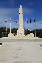 There was much discussion across the British empire about how the IWGC should commemorate the war dead. The construction of war cemeteries was a clear priority, but there was an ambition to produce a ground-breaking series of memorials to the fallen soldiers and the key battles along the Western front, while in the east there was an urgent political requirement to construct memorials to reinforce Britain's inter-war claims to influence and territories across the region.[112] The Dominions also wanted to have their own national monuments as part of the programme of work.[113] Initially twelve major memorials were planned, each of which would combine a memorial to a key battlefield, a cemetery and a monument to a specific Dominion, but the French government raised concerns over the considerable number and size of these memorials, leading to the plans being halved in scale.[114]