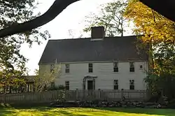Wenham | c.1658 | This house was built sometime around 1658 by James Moulton at the base of a hill.[57] Alterations to the home appear to have been made between 1750 and 1760 as the present chimney base is constructed of brick in the form of an arch.[58] The rooms on the south side of the chimney have also been remodeled on the first and second floors. Later alterations include a kitchen ell which was added about 1860–1870, and a side porch in the twentieth century.[58] |