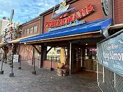 Fisherman's is a seafood restaurant housed in Miner's Landing at Pier 57 in Seattle's Central Waterfront. The menu has included chowders and Alaskan halibut.[1] In 2014, Dominic Holden of The Stranger wrote: "At the end of this pier is the Fisherman's Restaurant & Bar, which contains two massive brick patios (more than 80 tables between two levels) that jut out into Elliott Bay next to the Great Wheel. Bedecked with umbrellas, the seating is shady and the views are unbeatable: ferries, mountains, water, the whole Seattle thing. And it's inexpensive, and it's got lots of beer on tap, a full bar, and a happy hour, and—most of all—it feels nothing like the rest of Miner's Landing."[2]