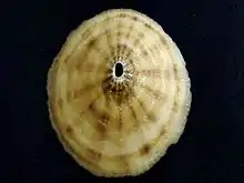 | Top view of a shell of Fissurella costata | |