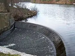 The Five Mile River is a short river that connects the outflow portion of Brooks Pond located at the boundary between the towns of North Brookfield and Spencer, and Lake Lashaway located downstream in North Brookfield. The river is a tributary, via the East Brookfield River, to the Quaboag River and is part of the Chicopee River Watershed. The Five Mile has been harnessed as a source of power for saw and grist mills and colonial foundry according to historical documentation. The proximity to iron ore, power from Brooks Pond (previously known as Johnson's Pond and North Pond), to power an air-blast bellows, and nearby abundance of wood (for charcoal), made the Five Mile River a good location for blast furnace and iron works operated by Jonathan and Nicholas Jenks in 1782. "Two Gilberts joined the enterprise and still later the venture was split in two--two furnaces, two forges etc.-each family operating one."