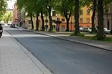 Drottninggatan is the main avenue and shopping street in the area, leading southwest from the modern city centre across River Fyris and past Fyristorg uphill to the university library, Carolina Rediviva. The final climb uphill through the park landscape to the library is commonly referred to as Carolinabacken, the site of yearly student festivities during the traditional Valborg celebrations on April 30.