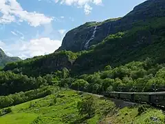 Flåmsdalen is a valley in Aurland Municipality in Vestland county, Norway. It is 18 kilometers (11 mi) long and runs from Myrdal to the village of Flåm, dropping 860 meters (2,820 ft) over the course of its run. The river Flåmselvi runs through the valley, as does the Flåm Line, a famous tourist destination.[1]