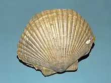 | A fossil valve of Flabellipecten flabelliformis | |